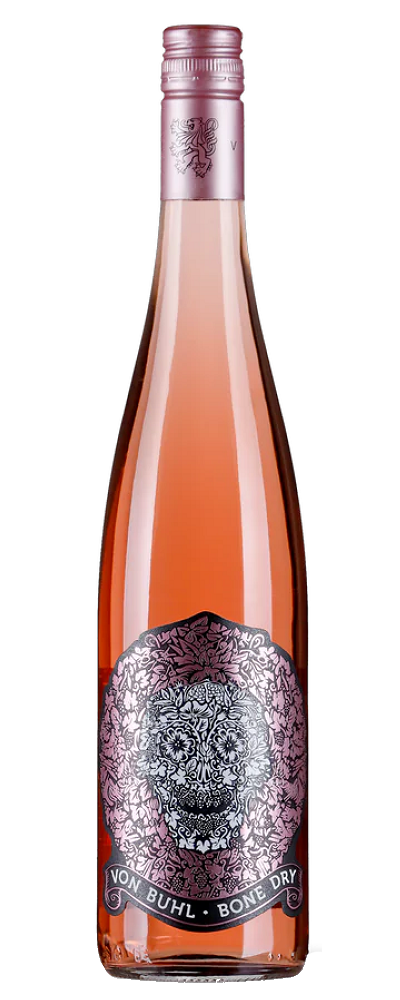 Die Linie Bone Dry von Reichsrat von Buhl beweist die Vorliebe des Kellermeisters für trockene Weine. Auf richtig richtig trockene Weine. Trocken kann laut dem deutschen Weingesätz jedoch bis zu neun Gramm Restzucker sein. Bei von Buhl bedeutet „trocken“ zwischen null und vier Gramm Restzucker. Kein Miligramm mehr. Der Bone Dry Rosé besitzt 0,3 Gramm Restzucker. Aber auf der Flasche steht selbstverständlich gesetzeskonform „trocken“ auf dem Etikett. Deshalb der Name Bone Dry: knochentrocken eben. Um dies auch visuell zu manifestieren, wurde ein ganz spezielles Etikett im Totenkopfstil entworfen, welches den knochentrockenen Ansatz noch einmal unterstreicht. Die Spätburgunder-Trauben werden nach der Lese enrappt und für 8 bis 14 Stunden auf der Maische liegen gelassen. Der Ausbau findet zur Hälfte im Edelstahl und zur Hälfte in gebrauchten Holzfässern statt.